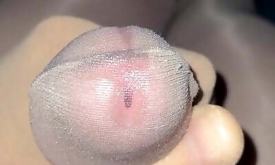 Nylon Footjob Deluxe! Mega multiple spunk shot!