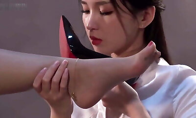 Teen School Educator Femdom Handjob On Her Pantyhose Heels