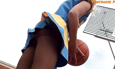 Lorine in Cheerleader Uniform and Stockings Shooting Balls and Flashing