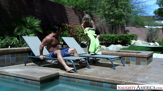 Mature mummy with good-sized juggs lures and ravages a poolboy