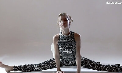 Super-cute sporty flexible nymph Olesya Kisbeka flashes tits during flexy time