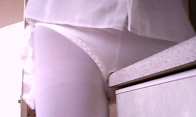 The hottest twat kneading and cum on roommate's kinky panties