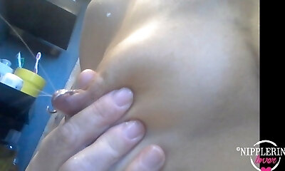 nippleringlover crazy prego milf milky tits pierced nipples squirting lots of milk on mirror