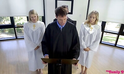 Sinful honey Haley Reed goes wild on a rigid pole in front of priest