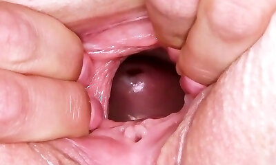 Huge dildo... The vagina that popped out of the aching snatch drips white drool...Continue at the fan club ...