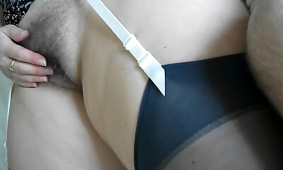 MILF step mummy in super-sexy dress wank cum on hairy pussy